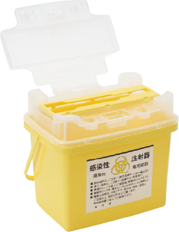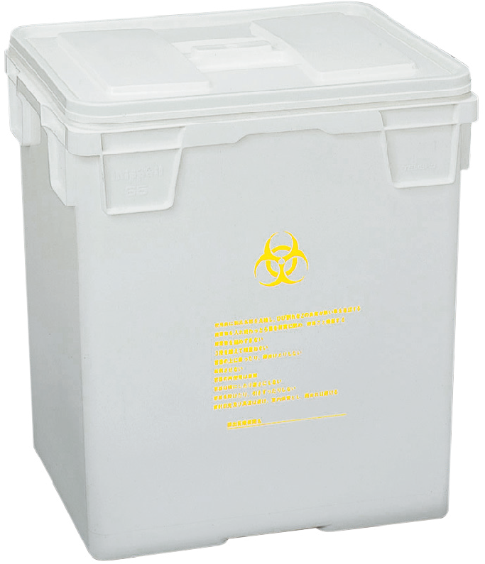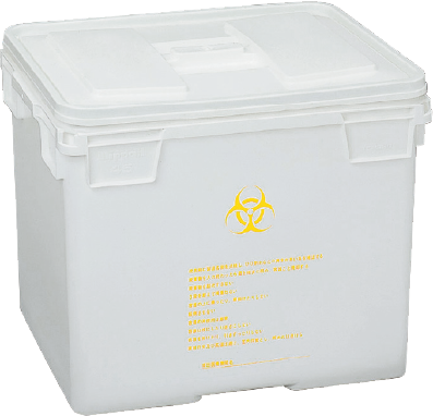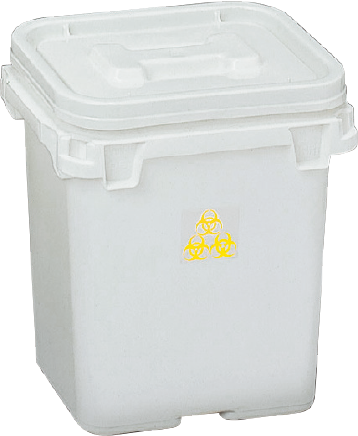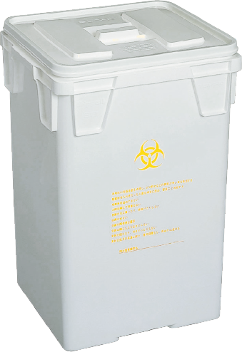 医療現場より排出される感染性廃棄物。発生後直ちに専用容器ミッペールに収納し、約70~80%の容量に達した時点で即座に蓋を閉じた状態にしなければなりません。