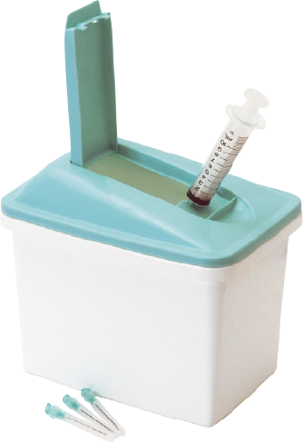 - ① 20mℓのシリンジを針付のまま、廃棄に最適な投入口を実現。